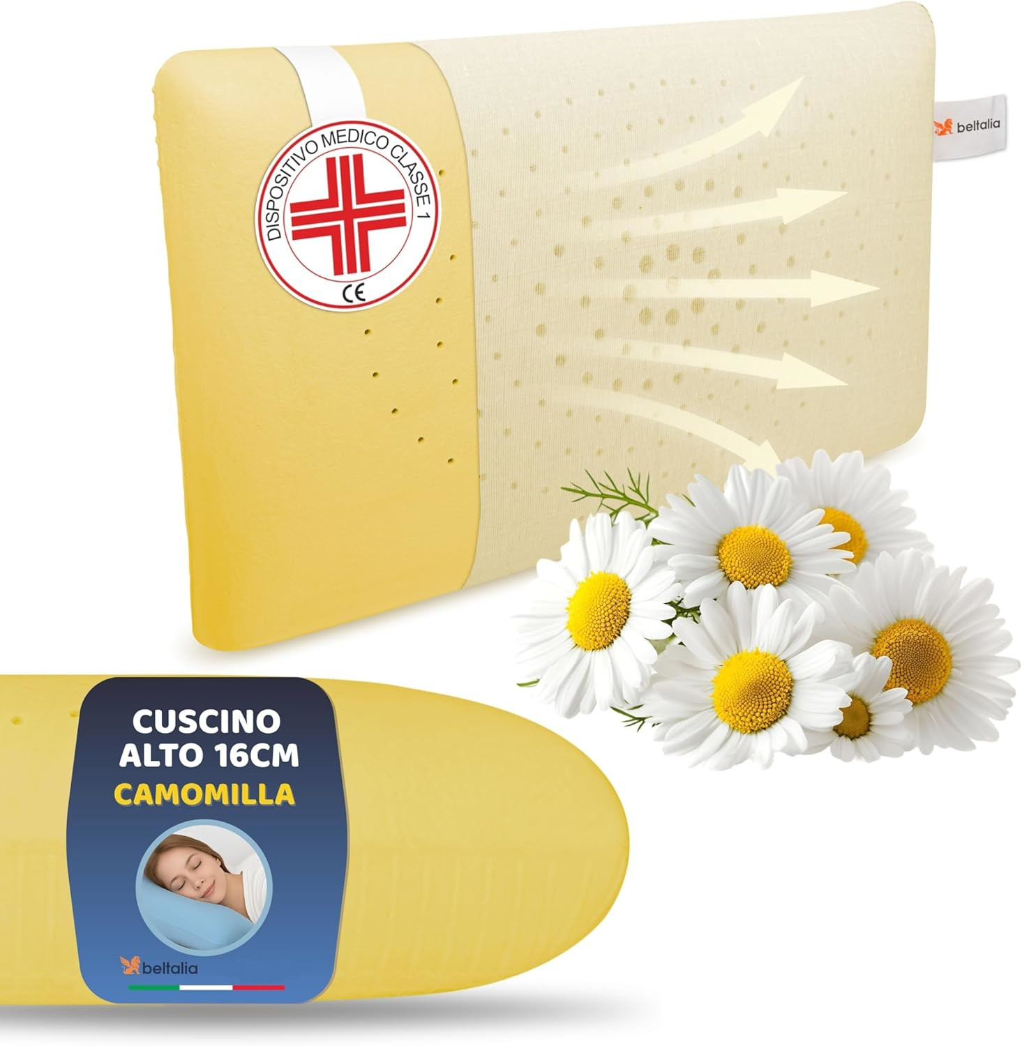AROMATERAPICO ALLA CAMOMILLA NATURALE: I nostri Cuscini Letto con Profumazione Delicata che Favoriscono Rilassamento e Serenità: un Comfort Sensoriale Pensato per il Benessere.