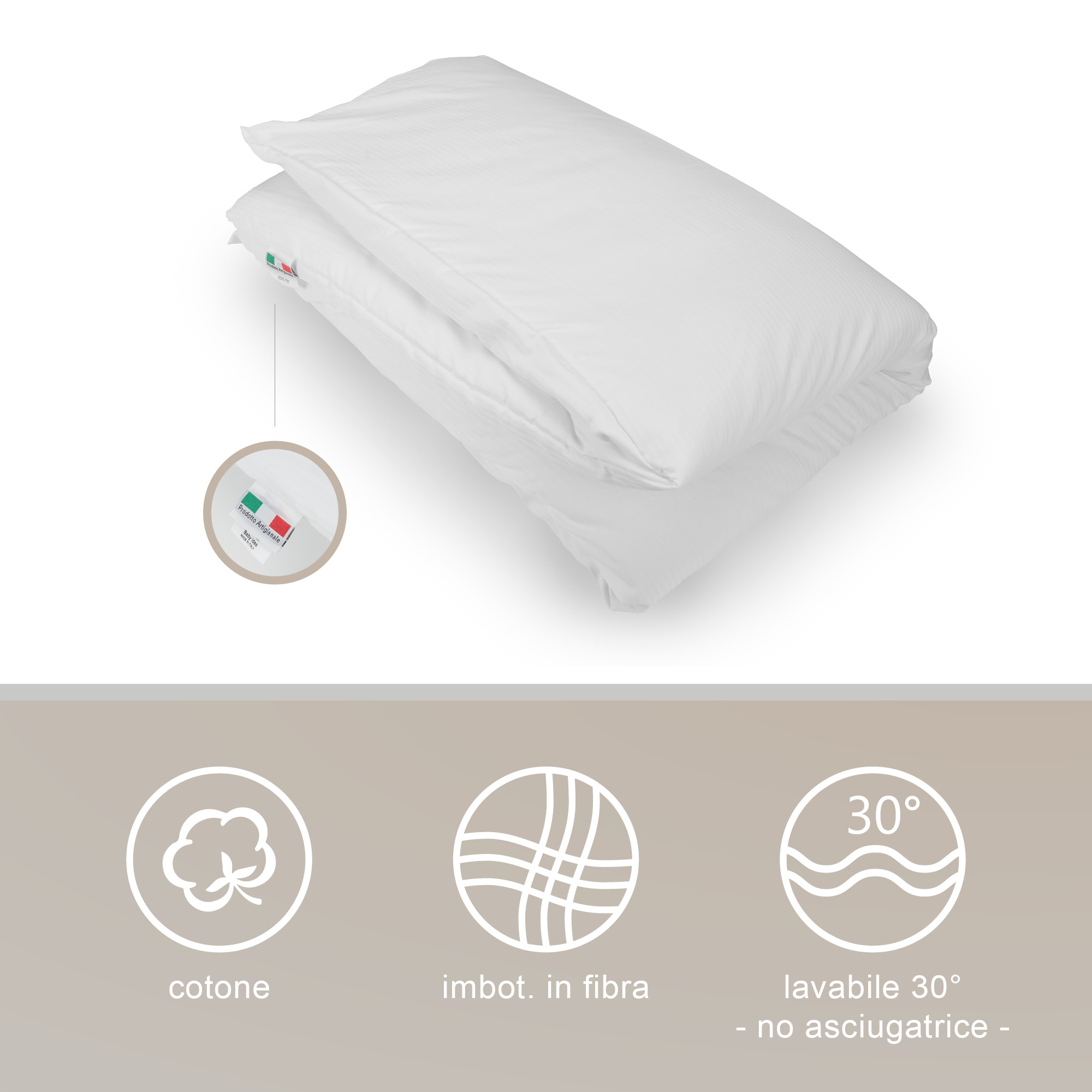 Tutti i materiali e il confezionamento sono Made in Italy, certificati Oeko-Tex®, sicuri, anallergici e antibatterici, per garantire il massimo comfort. Prodotto a norma EN16780:2018.