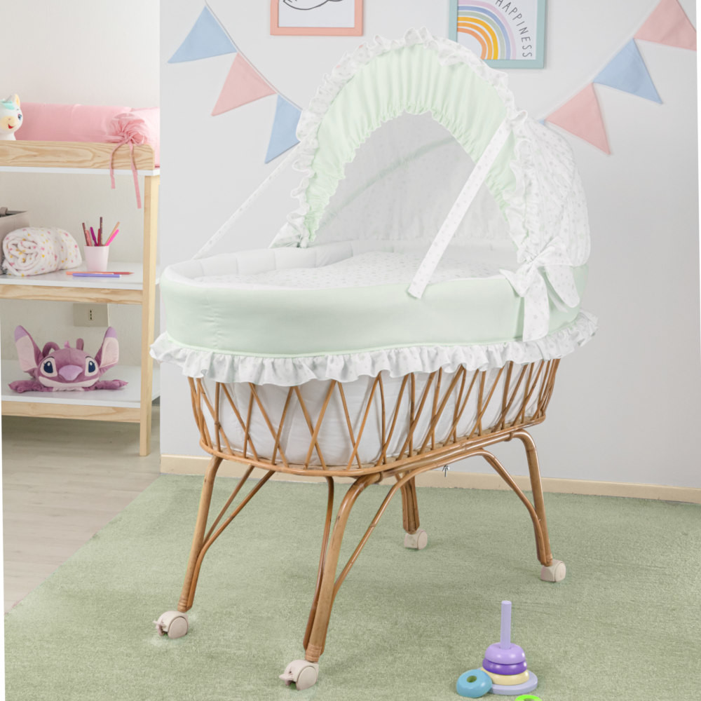 Babysanity realizza interamente nel suo laboratorio artigianale eleganti e raffinati rivestimenti per culle in vimini rendendo ancora più prezioso l'arrivo del tuo bimbo.