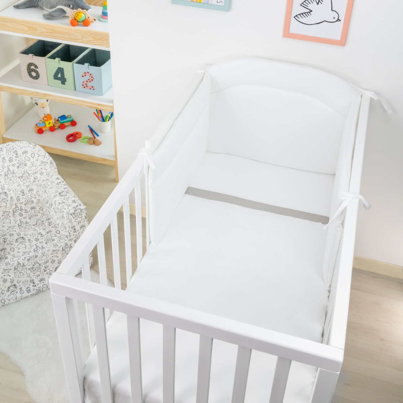 Sviluppato da BabyIdea® questo paracolpi per lettino protegge il bambino dagli urti, creando un ambiente sicuro e accogliente. Realizzato in cotone 100%, con imbottitura morbida e traspirante, si fissa facilmente grazie ai pratici laccetti.