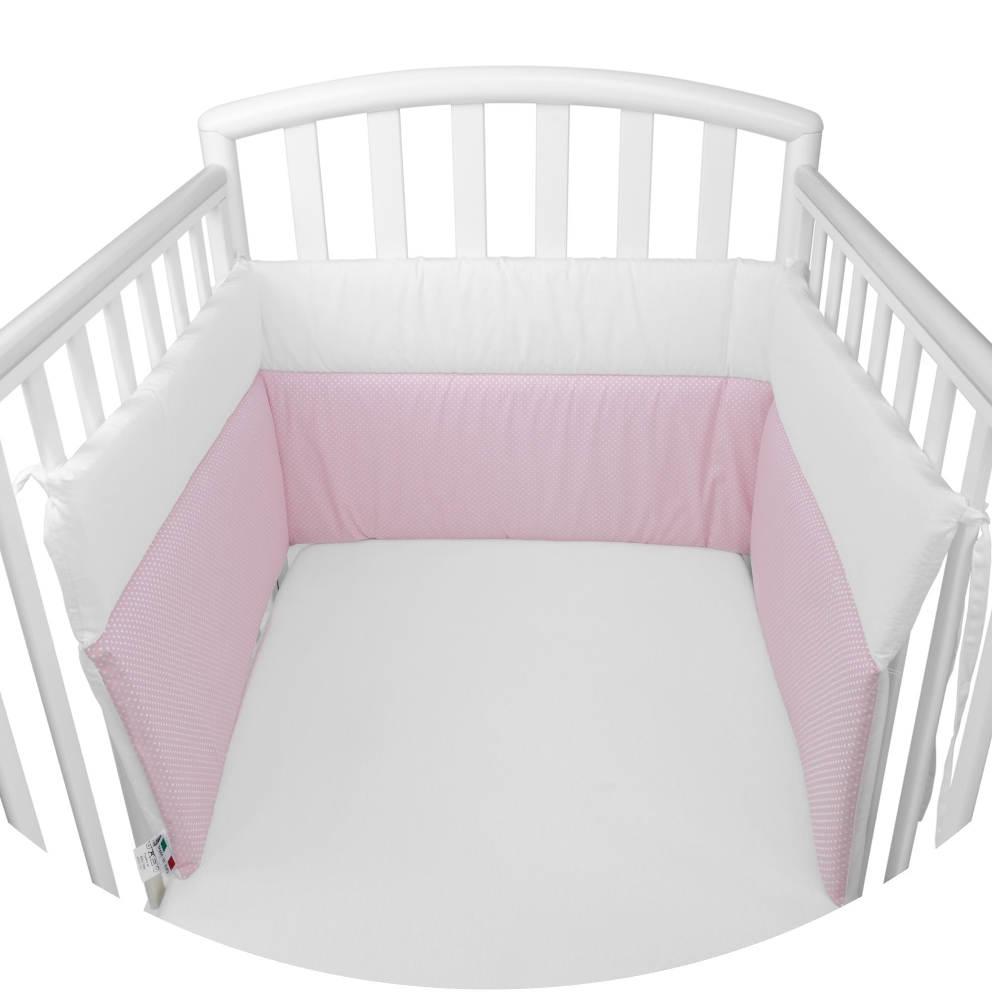 Il paracolpi culla è adattabile a tutti i tipi di letto, ripiegabile in tre lati, misura 67+65+67 x 40 cm di altezza. Tutti i tessuti del nostro paraurti lettino con sponde sono in possesso della certificazione Oeko-Tex® che garantisce l'assenza di prodotti nocivi. L'imbottitura è in fibra di poliestere traspirante da 400 grammi con spessore di ben 4 Cm, superiore ai prodotti analoghi in commercio. Il risultato è un prodotto anallergico, antibatterico e totalmente Made in Italy.