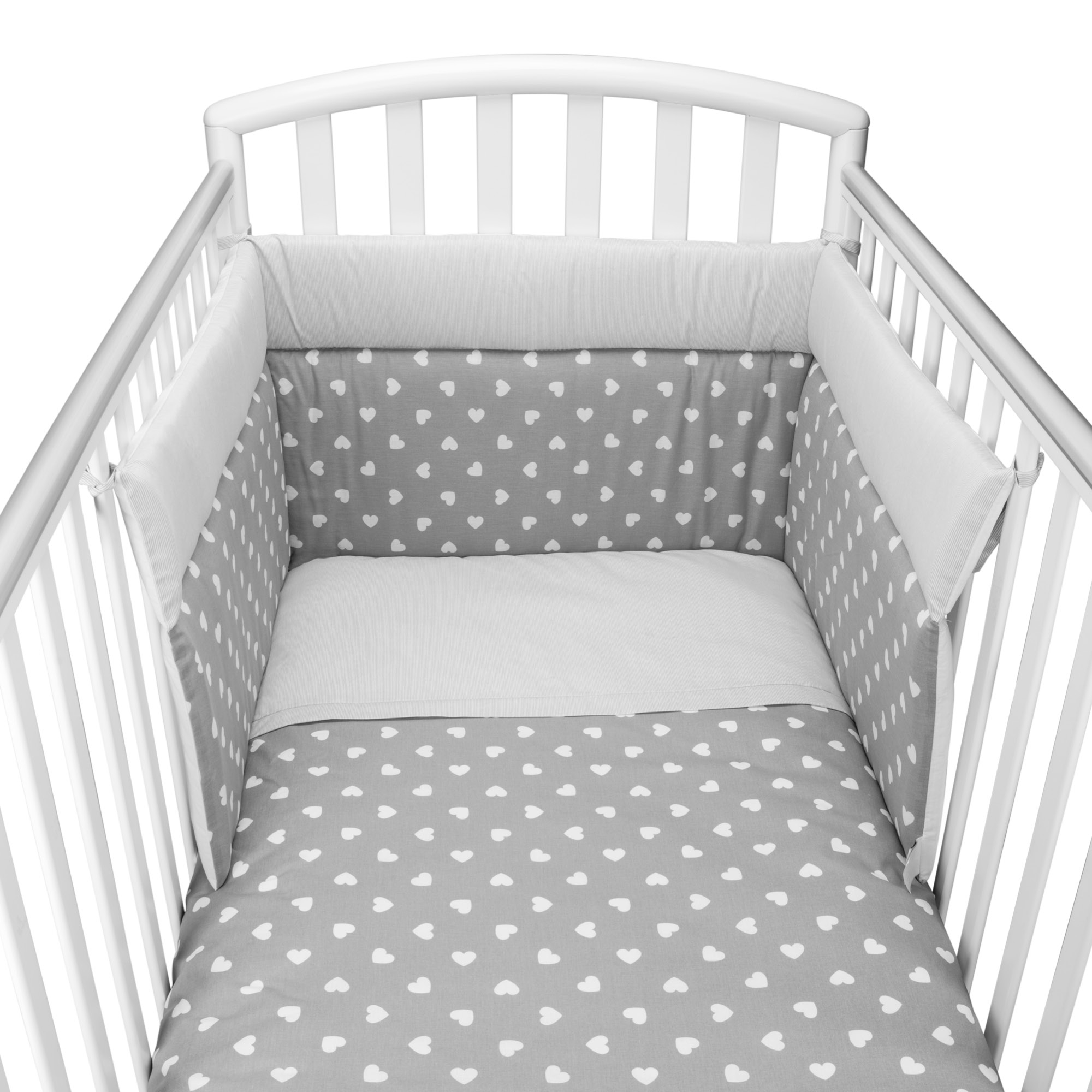 Il completo piumone lettino Cuore Grigio è realizzato con tessuto stampato 100% cotone. Il paracolpi della linea Cuore è lineare: Baby Idea® ha studiato e realizzato la versione lineare perchè ancora maggiormente adattabile a tutti quei lettini che offrono la possibilità di modificare l'altezza della posizione del materasso. In questo modo il neonato è sempre ben visibile alla mamma! Una vera esplosione di colore e fantasia per una cameretta calda ed accogliente! Tutti i materiali utilizzati sono prodotti in Italia ed il confezionamento avviene interamente presso il nostro laboratorio artigianale. I tessuti sono in possesso della certificazione Oeko-Tex che garantisce l'assenza di prodotti nocivi e ne attesta, attraverso scrupolose ricerche, assoluta sicurezza e rispetto della salute. Il risultato è un prodotto anallergico, antibatterico e totalmente Made in Italy. Il piumone per lettino è composto da imbottitura in fibra di poliestere anallergica termolegante e traspirante da 450gr rivestita con tessuto in cotone 100%. Il Paracolpi è imbottito in poliestere da 400gr, rivestito con tessuto in cotone 100%. Le imbottiture in poliestere sono anallergiche e traspiranti e realizzate in aziende italiane certificate. Il completo lettino Cuore Grigio è realizzato con amore ed è completamente Made in Italy. Ottimo come idea reagalo!