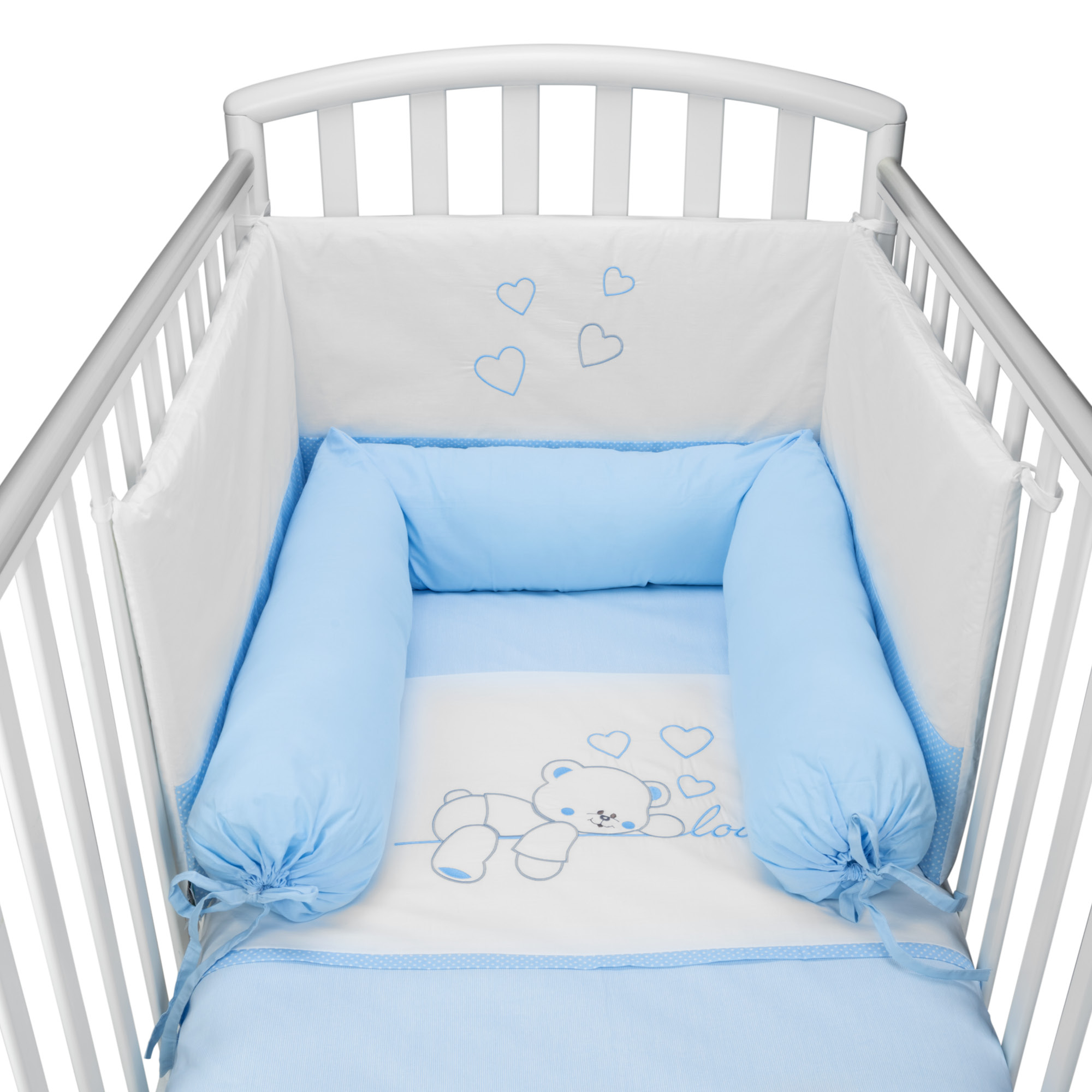 Sviluppato da BabyIdea® questo paracolpi per lettino protegge il bambino dagli urti, creando un ambiente sicuro e accogliente. Realizzato in cotone 100%, con imbottitura morbida e traspirante, si fissa facilmente grazie ai pratici laccetti.
