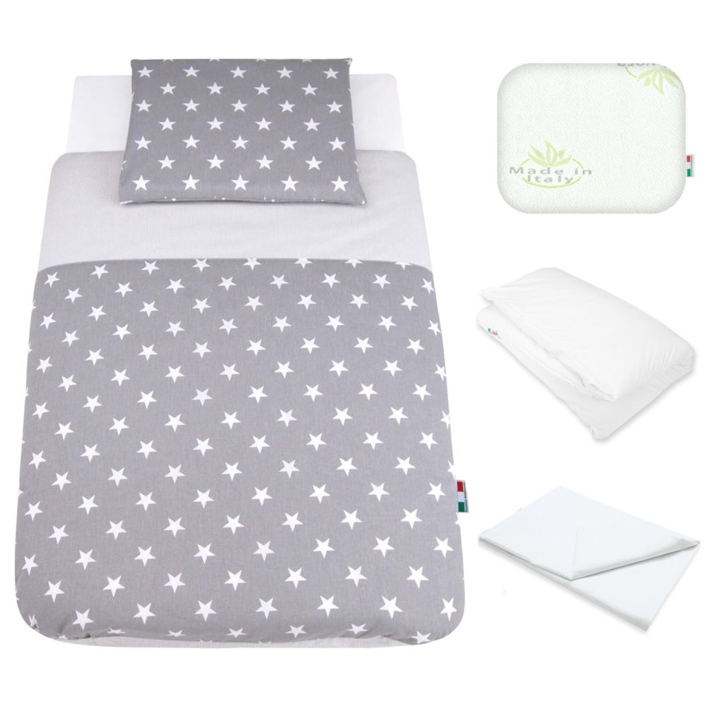 5 Pezzi: il Completo per Culla Neonato Fianco Letto ha in Dotazione: 1 Cuscino Culla con Fori Traspiranti, 1 Federa Cuscino, 1 Lenzulo Sotto con Angoli, 1 Copripiumino A Sacco, 1 Imbottitura Piumino Culla