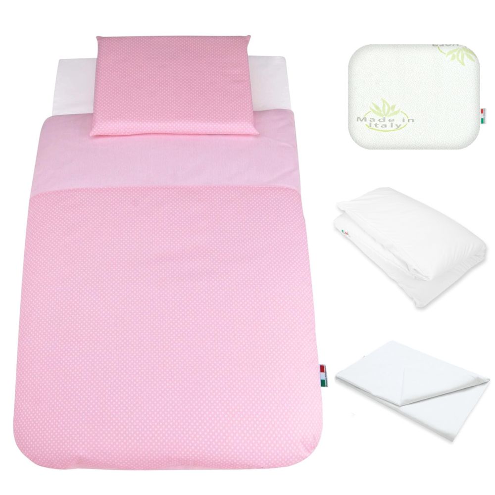 5 Pezzi: il Completo per Culla Neonato Fianco Letto ha in Dotazione: 1 Cuscino Culla con Fori Traspiranti, 1 Federa Cuscino, 1 Lenzulo Sotto con Angoli, 1 Copripiumino A Sacco, 1 Imbottitura Piumino Culla