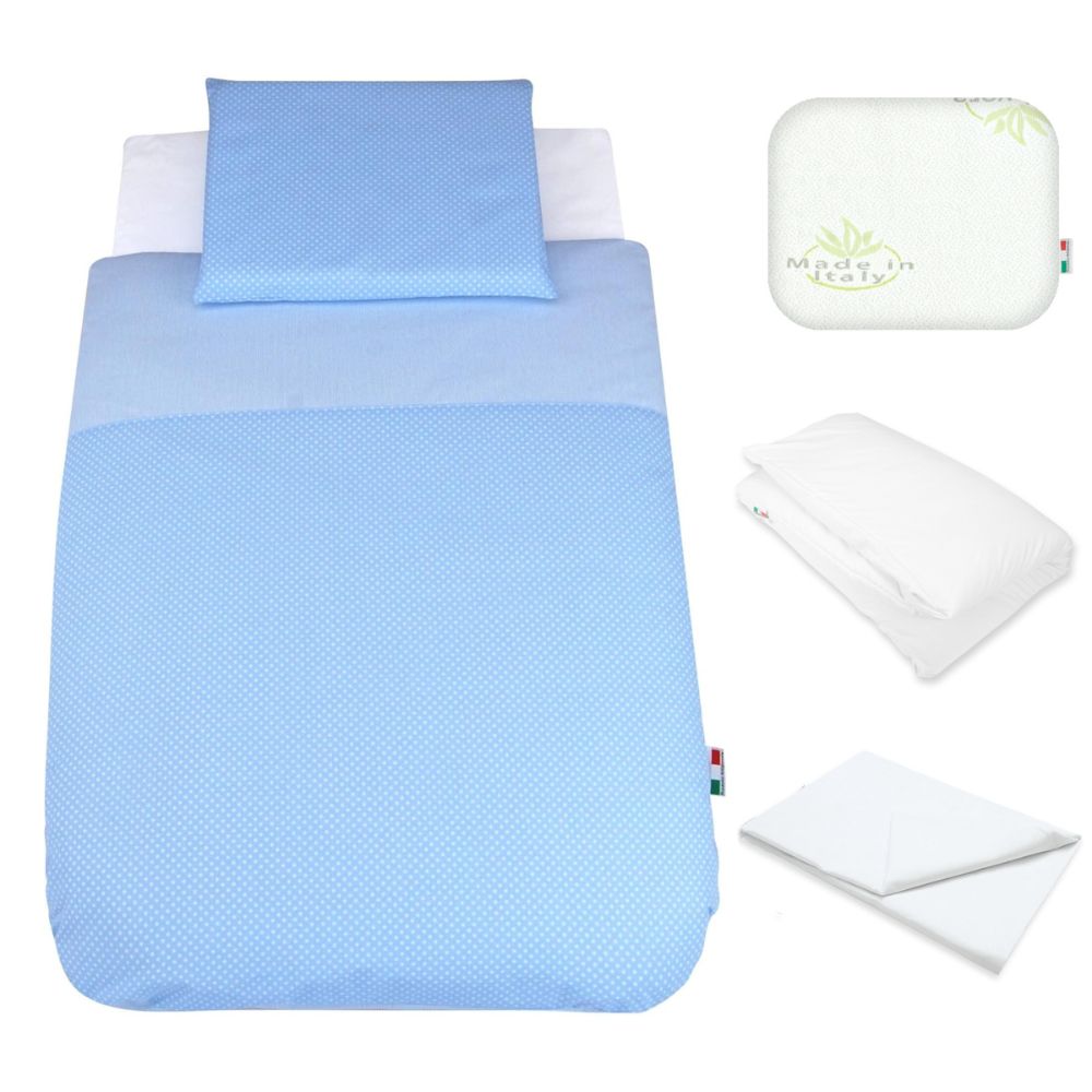 5 Pezzi: il Completo per Culla Neonato Fianco Letto ha in Dotazione: 1 Cuscino Culla con Fori Traspiranti, 1 Federa Cuscino, 1 Lenzulo Sotto con Angoli, 1 Copripiumino A Sacco, 1 Imbottitura Piumino Culla