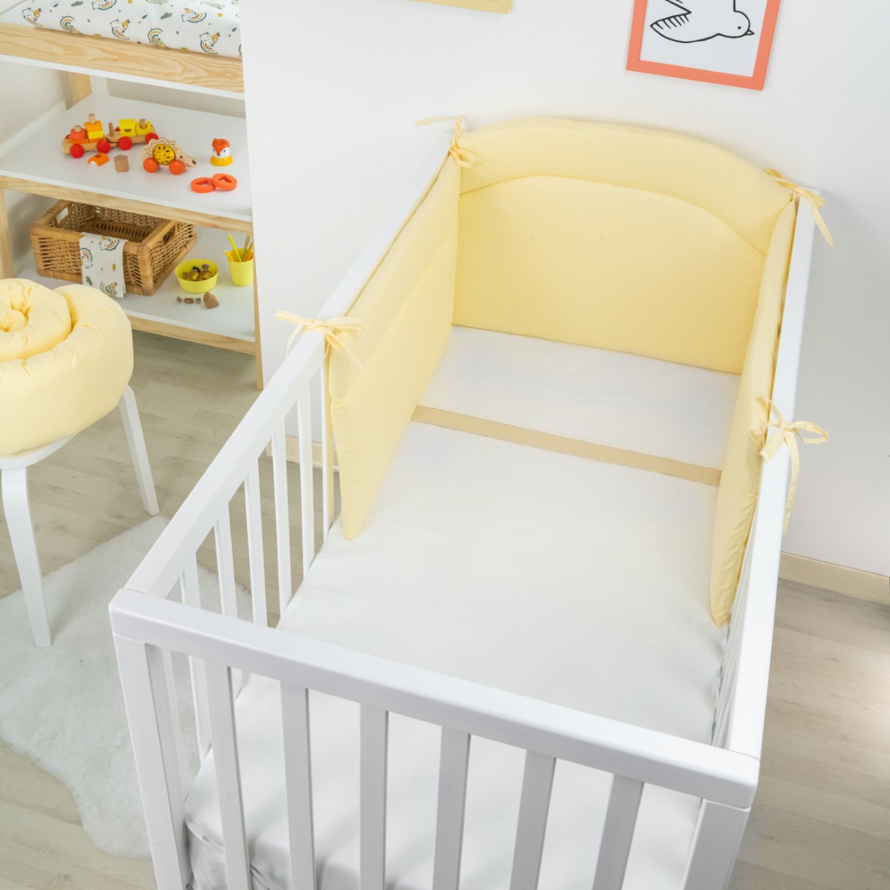 Sviluppato da BabyIdea® questo paracolpi per lettino protegge il bambino dagli urti, creando un ambiente sicuro e accogliente. Realizzato in cotone 100%, con imbottitura morbida e traspirante, si fissa facilmente grazie ai pratici laccetti.