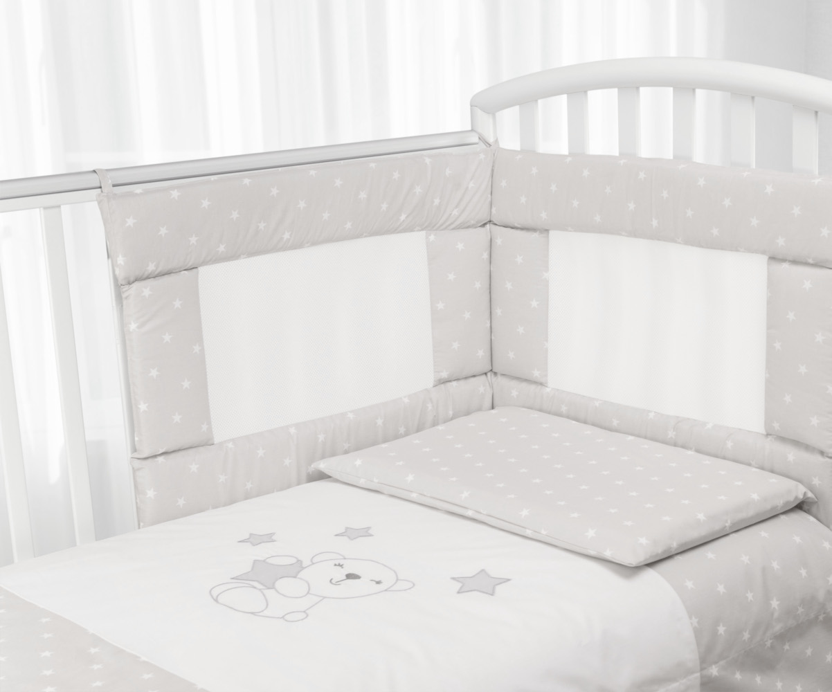 Set Piumone Lettino con Paracolpi Ad Alta Traspirabilità, Copri Piumino e Federa Sfoderabile - Little Star Grigio