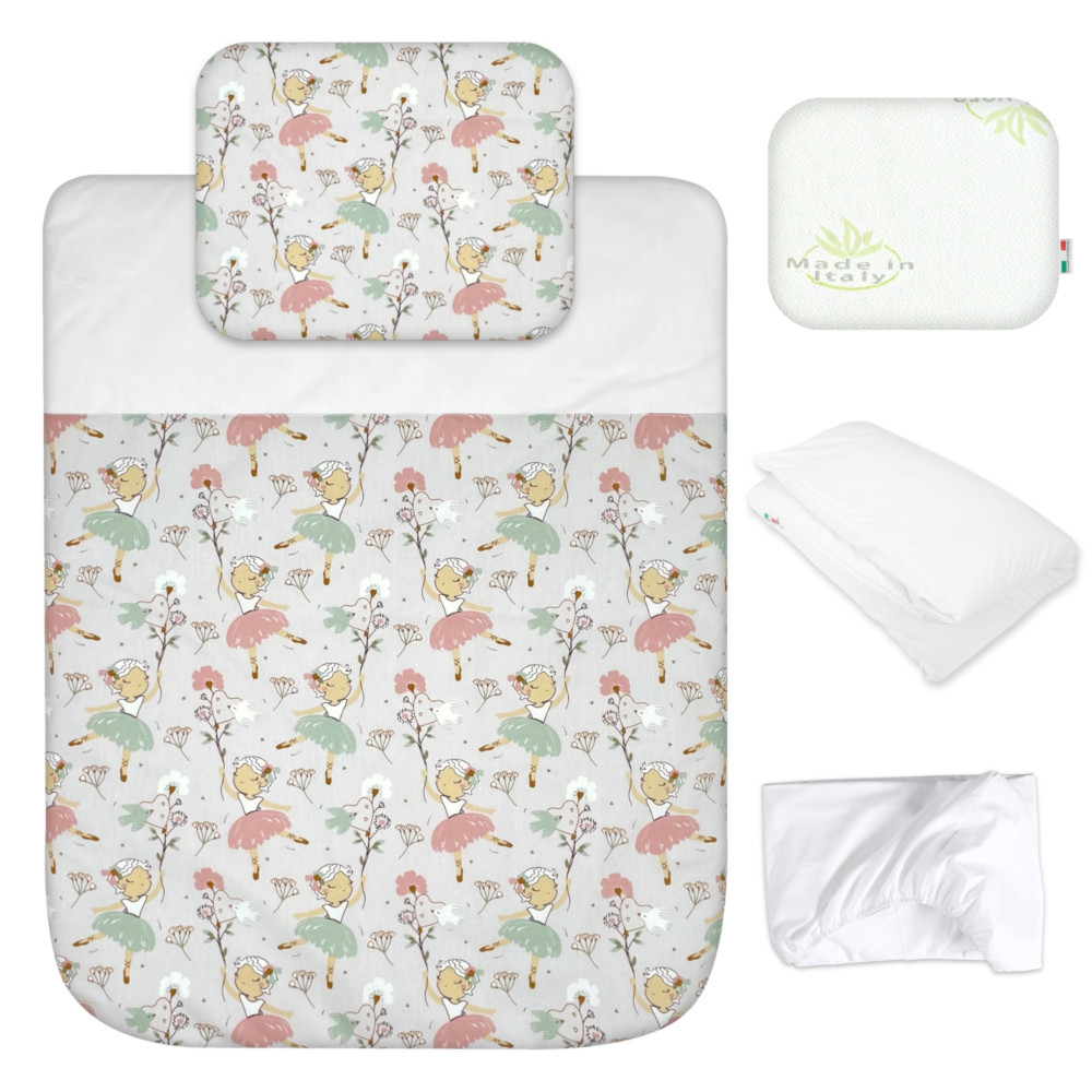 5 Pezzi: il Completo per Culla Neonato Fianco Letto ha in Dotazione: 1 Cuscino Culla con Fori Traspiranti, 1 Federa Cuscino, 1 Lenzulo Sotto con Angoli, 1 Copripiumino A Sacco, 1 Imbottitura Piumino Culla