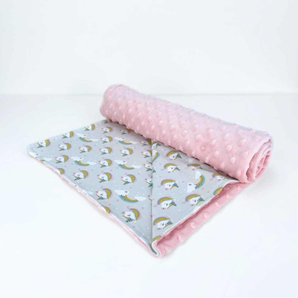 Coperta Carrozzina Double Face in Jersey e Minky - Fantasia Unicorno Rosa