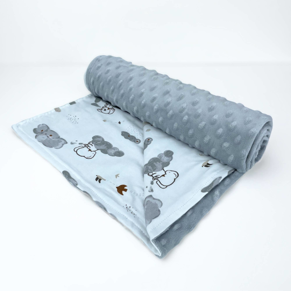 Coperta Carrozzina Double Face in Jersey e Minky - Fantasia Koala Grigio