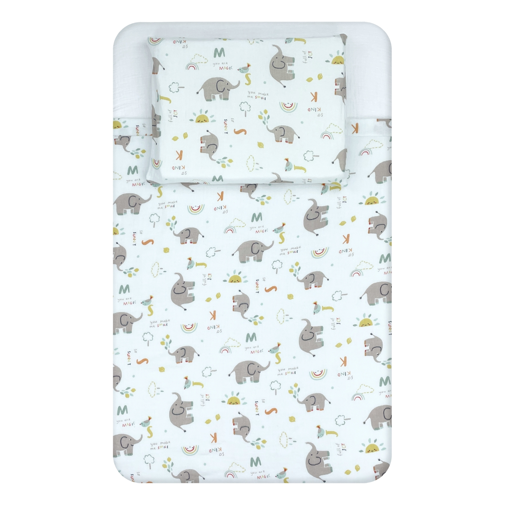 SET COMPLETO - Il Set Lenzuola Next To Me Include 3 Pezzi: 1 Lenzuolo Sotto con Angoli 87x53 Cm, 1 Lenzuolo Sopra 136x80 cm e 1 Federa 26x33 cm tutto in Mussola. Un Set Perfetto per Ogni Lettino Neonato.