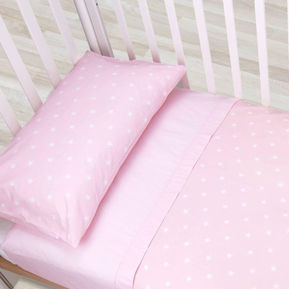 Copripiumino e Federa Cuscino per Lettino Bambino 100% Cotone (2 pezzi) - Stella Rosa