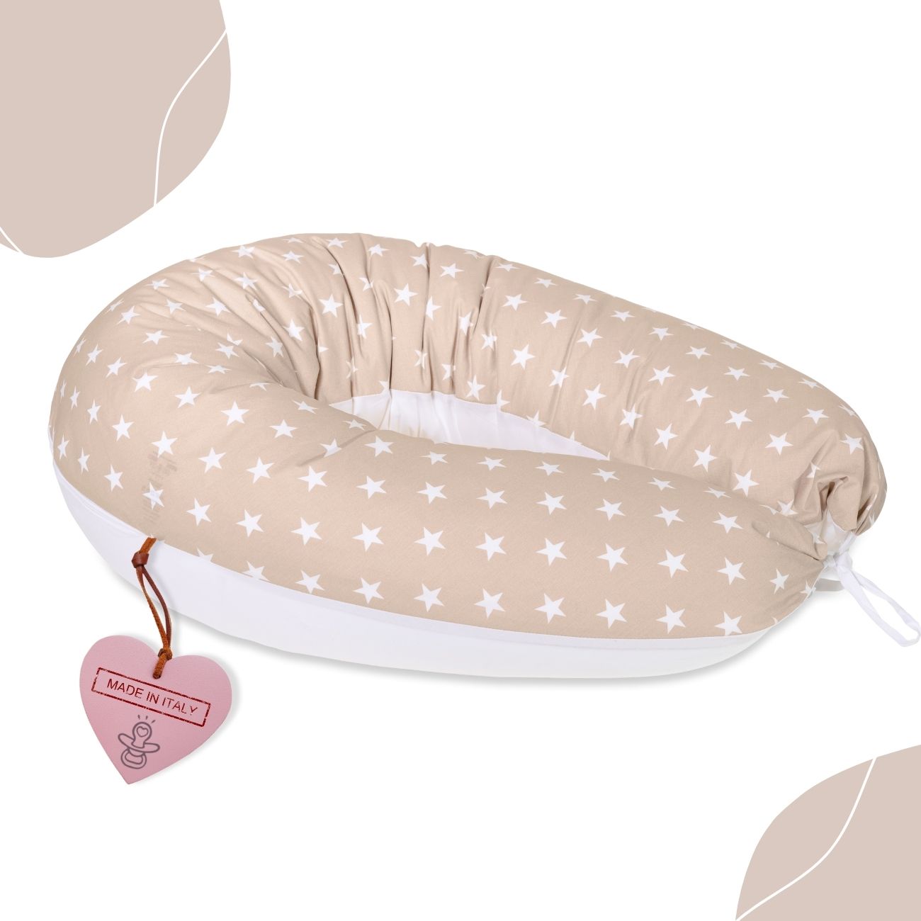 SMILE di BabyIdea® è un cuscino multifunzionale pensato per accompagnare la mamma e il bambino in ogni fase. Offre supporto durante la gravidanza, favorendo il riposo, e si adatta all’allattamento per un sostegno ottimale. Può essere usato come riduttore per lettino o come nido accogliente.