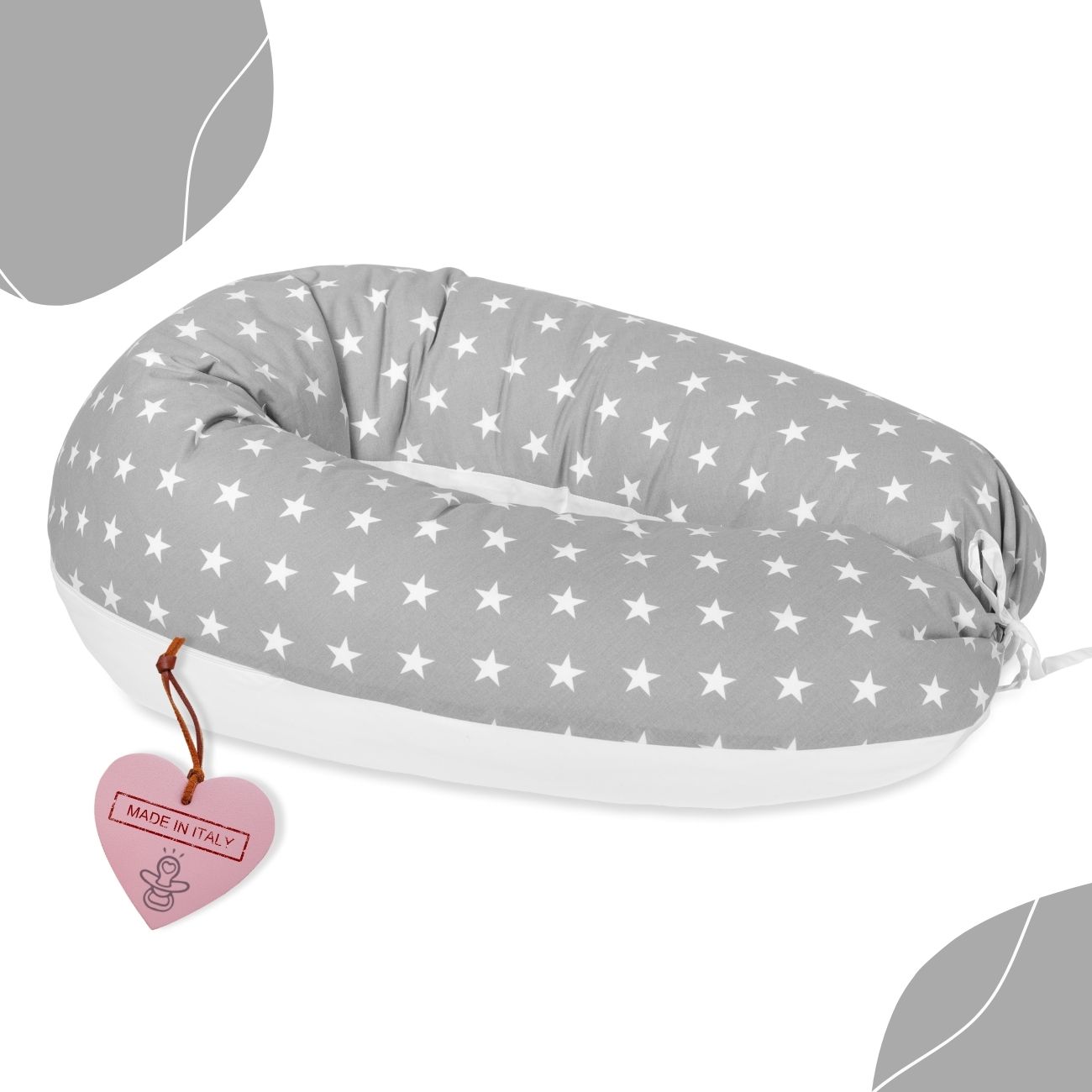 SMILE di BabyIdea® è un cuscino multifunzionale pensato per accompagnare la mamma e il bambino in ogni fase. Offre supporto durante la gravidanza, favorendo il riposo, e si adatta all’allattamento per un sostegno ottimale. Può essere usato come riduttore per lettino o come nido accogliente.