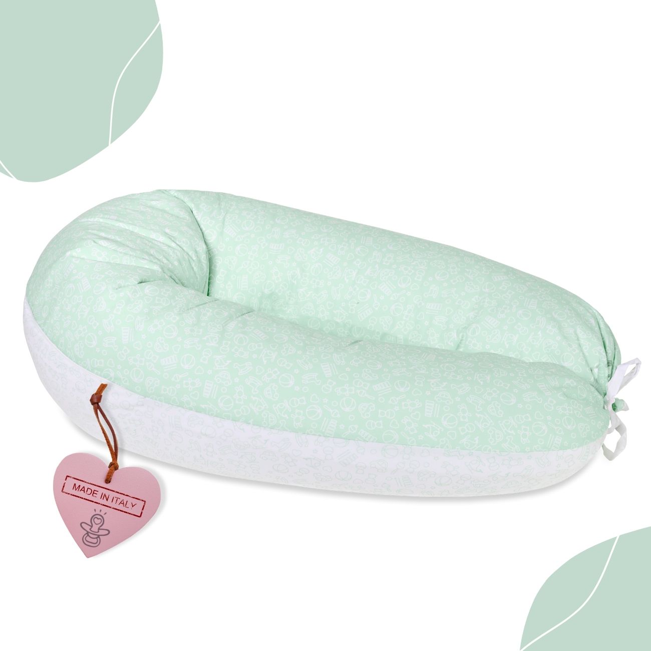 SMILE di BabyIdea® è un cuscino multifunzionale pensato per accompagnare la mamma e il bambino in ogni fase. Offre supporto durante la gravidanza, favorendo il riposo, e si adatta all’allattamento per un sostegno ottimale. Può essere usato come riduttore per lettino o come nido accogliente.